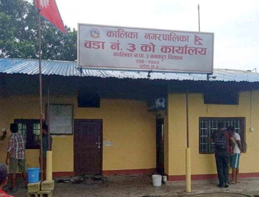 १७ साउन, चितवन । चितवनको कालिका नगरपालिका वडा नं ३ को कार्यालयमा आगजनी गरिएको छ । वडा कार्यालयमा शुक्रबार बिहान ३ बजे अज्ञात समूहले आगजनी गरेको जिल्ला प्रहरी कार्यालय चितवनले जानकारी दिएको छ ।