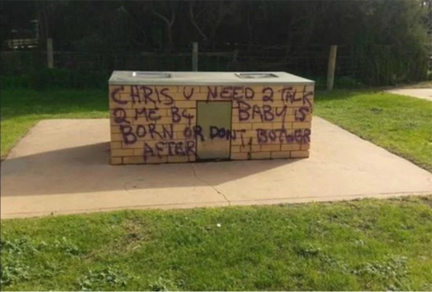 अस्ट्रेलियाको फ्रेन्कटाउनमा पार्क, पब्लिक बाथरुम, बार्बिक्यू तथा सबैजसो पर्खालहरुमा उनले सन्देश लेखकी छिन् । उनले लेखेकी छिन्, ‘क्रिस, यो संसारमा बच्चा आउनुअघि नै तिमीले मसँग कुराकानी गर्नु आवश्यक छ ।’