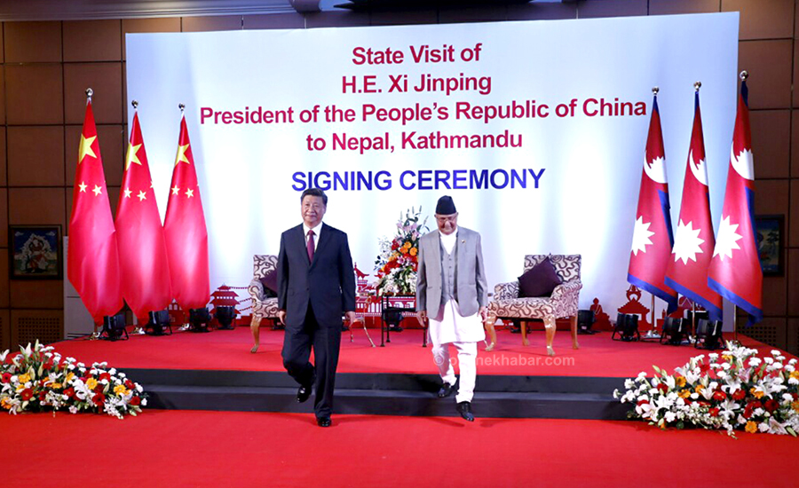 चिनियाँ राष्ट्रपति सी चिनफिङ र प्रधानमन्त्री केपी शर्मा ओलीको उपस्थितिमा सहमति तथा सम्झौतापत्र आदान प्रदान गरिएको छ ।