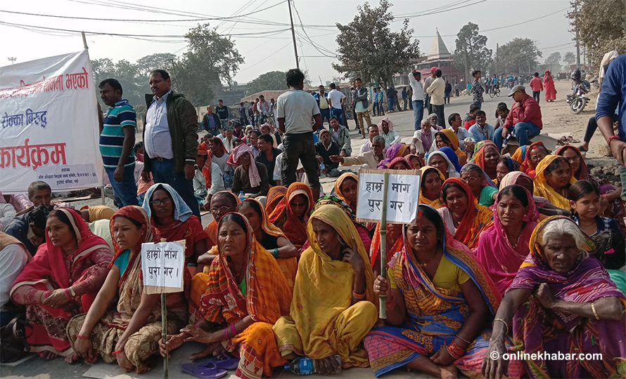 २० मंसिर, वीरगञ्ज । वीरगञ्जको एकीकृत भन्सार जाँच चौकी (आईसीपी) र सुख्खा बन्दरगाहबीचको जग्गाका वासिन्दा मुआब्जाको विरोधमा प्रदर्शनमा उत्रिएका छन् ।