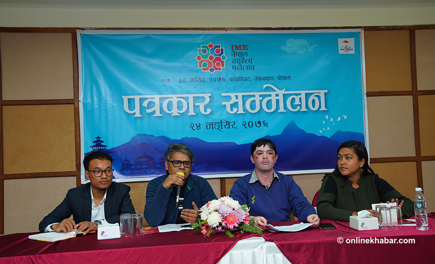 २४ मंसिर, पोखरा । आईएमई नेपाल लिटरेचर फेस्टिबलको ८ औं संस्करण शुक्रबारदेखि पोखराको बाराहीघाट लेकसाइडमा हुने भएको छ । आयोजक बुकवर्म फाउन्डेसन र र्यान्डम रिडर्स सोसाइटीले सोमबार पोखरामा पत्रकार सम्मेलनमार्फत फेस्टिबल मंसिर २७–३० गतेसम्म आयोजना हुने जानकारी दिएको हो ।