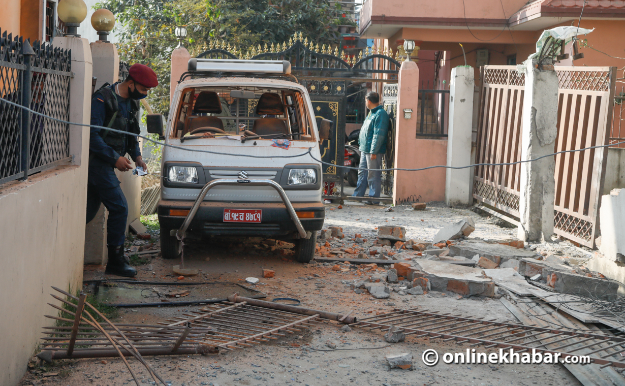 २८ फागुन, काठमाडौं । पूर्वसञ्चारमन्त्री गोकुल बास्कोटाको घरमा बम विष्फोट भएको छ । बम विष्फोटबाट घरको कम्पाउन्डमा क्षति पुगेको छ । छिमेकीका घर र एउटा भ्यानमा समेत बमले क्षति पुर्याएको छ ।