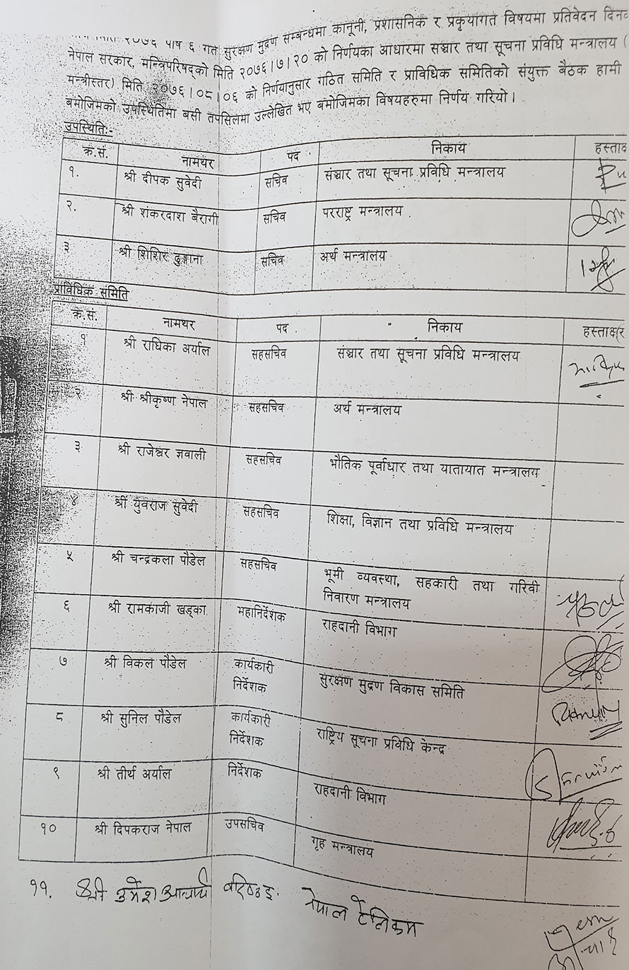 हेर्नुहोस् जीटुजीमार्फत् सेक्युरिटी प्रिन्टिङ प्रेस खरीद प्रक्रियासम्बन्धी विभिन्न निर्णयहरुमा सहभागी सरकारी अधिकारीहरुको नामावली–
