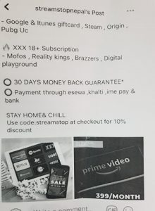 नेटफ्लिक्स,अमेजन प्राइम भिडियो, हटस्टार, जी फाइफ, सोनी लिभ, अल्ट बालाजीजस्ता नेपालमा दर्ता नभएका विदेशी भिडियो कन्टेन्ट उत्पादकहरूले इन्टरनेटमार्फत निर्बाध रुपमा नेपालमा ग्राहक बनाएर अर्बौं रुपैयाँ हुण्डी शैलीमा विदेश लगिरहेका छन् । उनीहरूले फेसबुक र इन्स्टाग्रामहरूमा अफर नै दिएर नेपाली ग्राहक थपिरहेका छन् । ग्राहक बनेकाहरूले शुल्क भने चोर बाटोबाट तिर्नुपर्छ ।