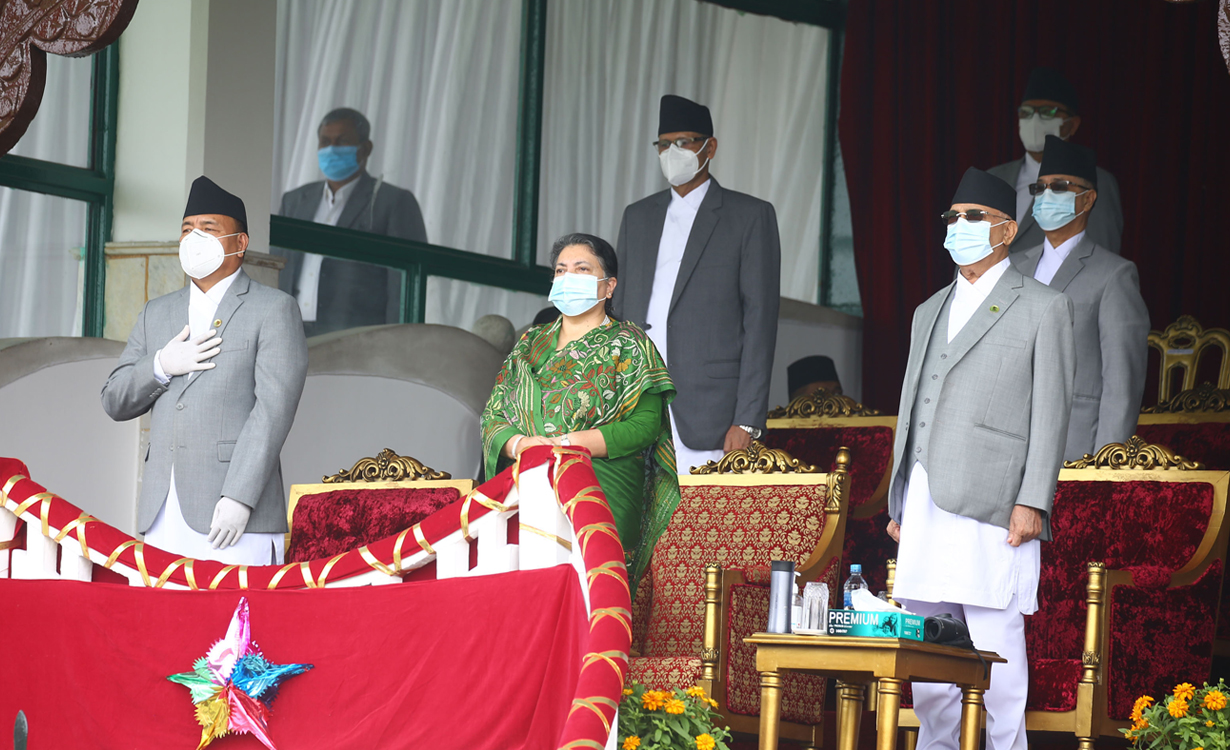 ‘संविधानले निदर्शिष्ट गरेका कुराहरु कार्यान्वयन गर्न संरचनाहरु चाहियो, कानुन चाहियो । प्रदेशको निर्वाचन गर्यौं, तर, भैत्तिक संरचना थिएन । अन्य औजारहरुको व्यवस्थापन, कर्मचारी व्यवस्थापन गर्न पर्यो’ प्रधानमन्त्री ओलीले भने, ‘०७२ मा संविधान जारी भयो । ०७४ मा गएर बल्ल चुनाव भयो । ०७५, ०७६, ०७७ अहिले तेस्रो बर्ष चल्दैछ । यो बीचमा नमुना कानुन, नियमावली निर्देशिकाहरु बनाएर पठाइएको छ । अधिकारको बँँडाफाँड लगायतका कुराहरुलाई सम्बोधन गरिएको छ ।’