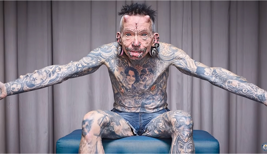 रोल्फ बुखोल्च नामका ती व्यक्तिले जीउमा ५१६ पटक बडी मोडिफिकेसन गरेर गिनिज बुकमा नाम लेखाएका हुन् । जीउमा टाटु खोपाउनेदेखि सुई रोपाउने तथा सिङ निकाल्नेदेखि प्वाल पार्नेसम्मका सबै काम गर्न भ्याएका छन् उनले ।
