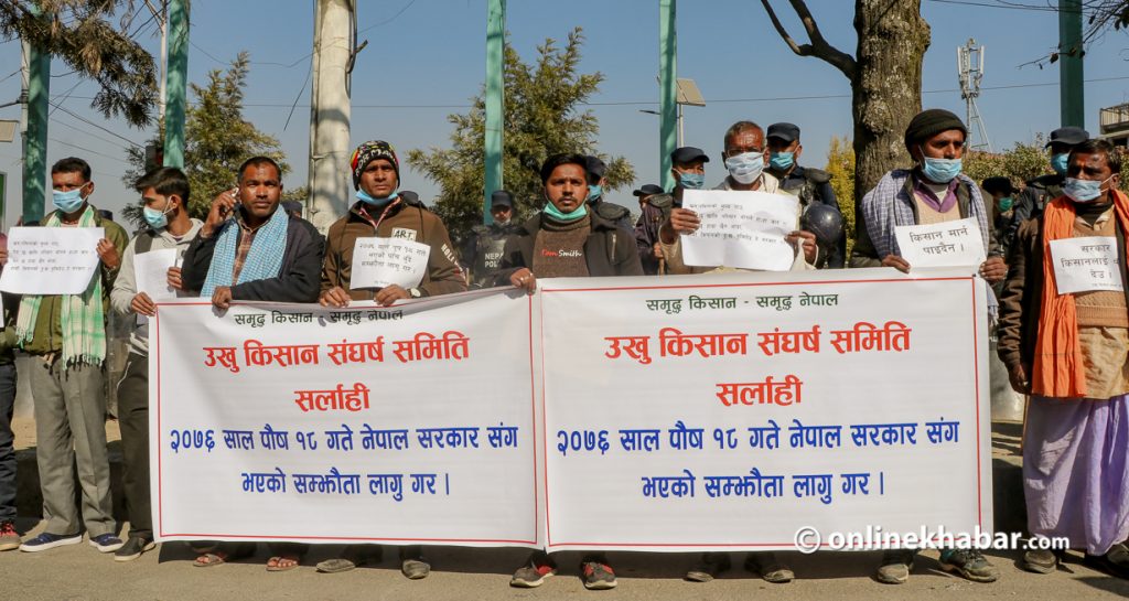 उखु बिक्री गरेको रकम ९० करोड रुपैयाँ भन्दा बढी भुक्तानी नपाएपछि विभिन्न जिल्लाबाट काठमाडौं आएका किसानले माइतीघरमा प्रदर्शन गरिरहेका छन् । गत वर्ष यस्तो आन्दोलनपछि सरकारले भुक्तानी दिलाइदिन समन्वय गर्ने सम्झौता भए पनि अहिलेसम्म भुक्तानी नपाएपछि किसानहरु फेरि आन्दोलन गर्न आएका हुन् ।