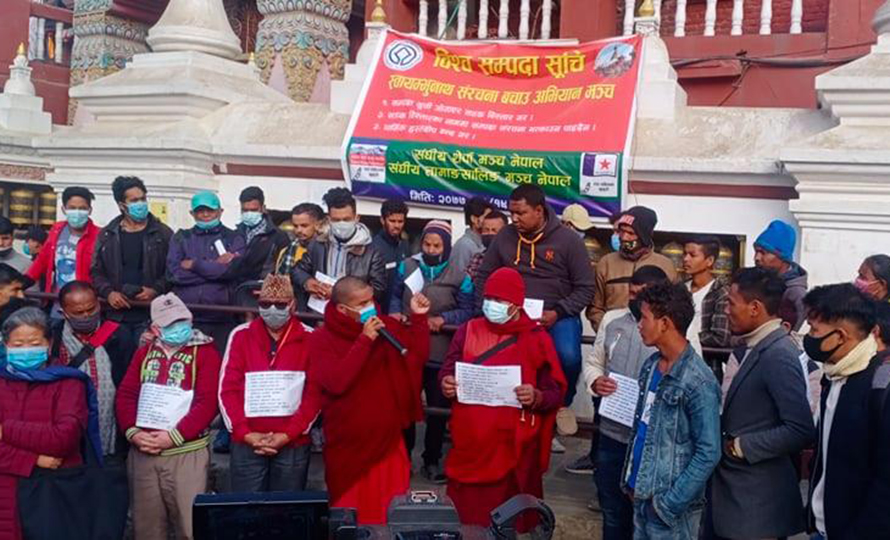 यही माग राखेर स्वयम्भु विश्वसम्पदा क्षेत्र बचाऔं अभियान पनि आन्दोलित छ ।
