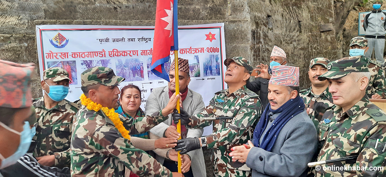 गोरखा-काठमाडौं एकीकरण मार्गमा नेपाली सेनाले थाल्यो पदयात्रा