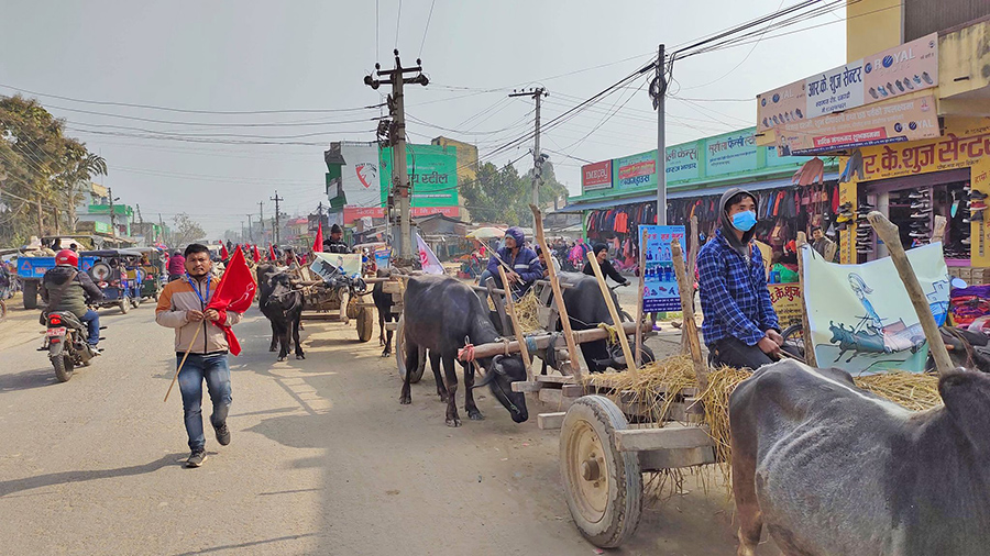 २६ पुस, कैलाली । प्रधानमन्त्री केपी शर्मा ओलीको सिफारिसमा संसद विघटन गरिएको बिरोधमा धनगढीमा बयलगाडासहित जुलुस निकालिएको छ ।