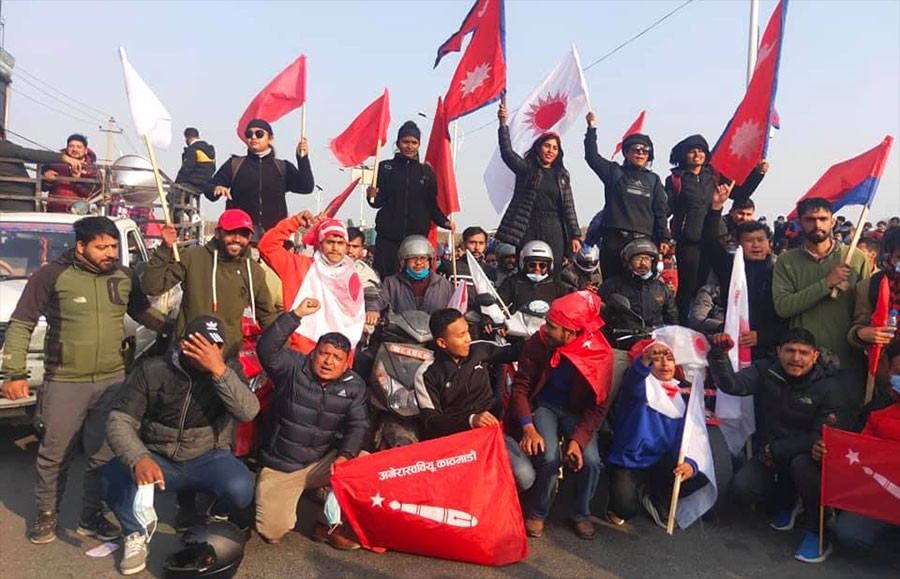 १६ माघ, काठमाडौं । संसद विघटनको विरोधमा आन्दोलनरत नेकपा (प्रचण्ड-माधव नेपाल पक्ष)का विद्यार्थीहरुले तेस्रो चरणको आन्दोलनका कार्यक्रम तय गरेका छन् ।