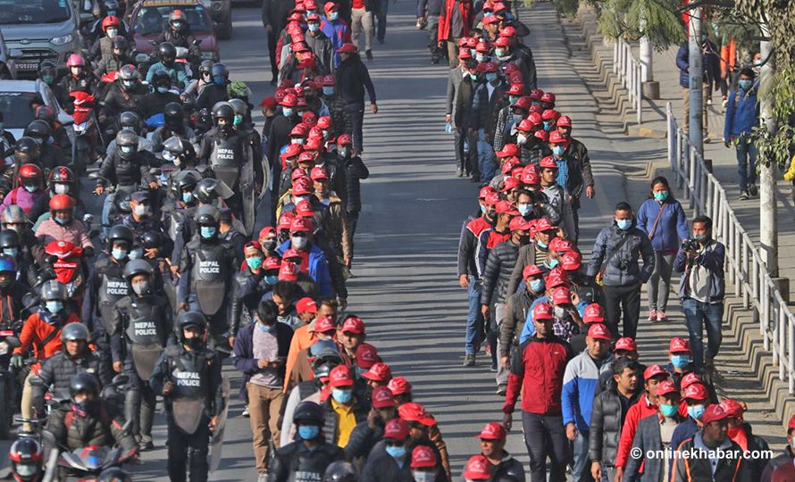 २७ माघ, काठमाडौं । नेकपा प्रचण्ड–माधव समूहले काठमाडौंमा गर्न लागेको प्रदर्शनको अघिल्लो दिन मंगलबार मार्चपास गरेको छ ।