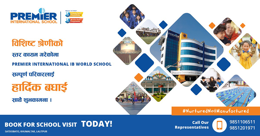 १७ फागुन, काठमाडौं।  ललितपुर महानगरपालिकाले प्रिमिएर इन्टरनेसनल आईबी वर्ल्ड स्कुल सातदोबाटोलाई ‘क’ श्रेणीको विशेष सुविधायुक्त विशिष्ठ श्रेणीको विद्यालय सञ्चालन अनुमति प्रदान गरेको छ । शिक्षा नियमावली २०५९ को (संशोधन सहित) नियम १५४ को अनुसुची २१ बमोजिम आफ्नो स्कूलभित्रको शैक्षिक संरचना, पूर्वाधार र गुणस्तर सँग-सँगै विद्यालयले सार्वजनिक शिक्षाको स्तर बढाउनका लागि गर्न सक्ने योगदान र क्षमता हेरी उक्त उच्चस्तरीय मान्यताका लागि उक्त अनुमति प्रदान गरिएको हो ।