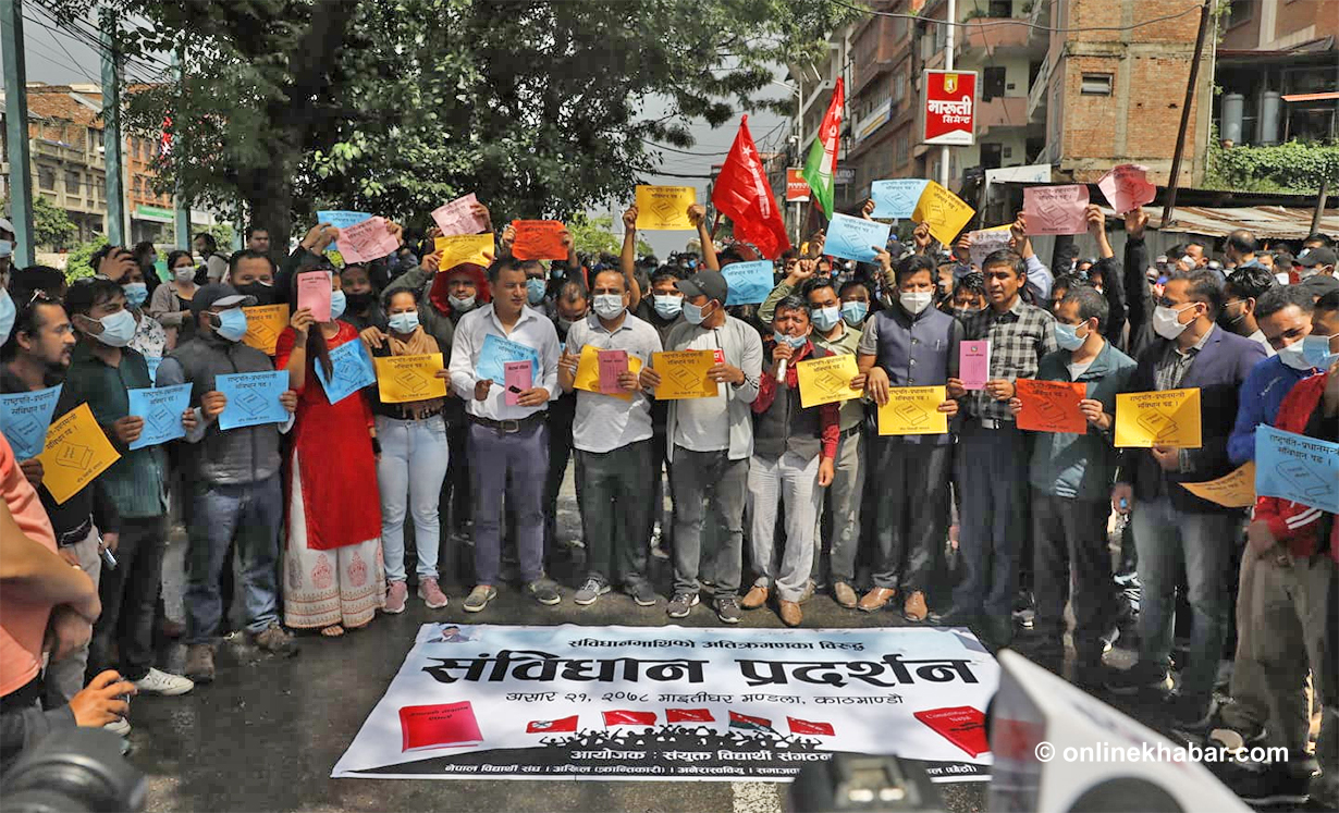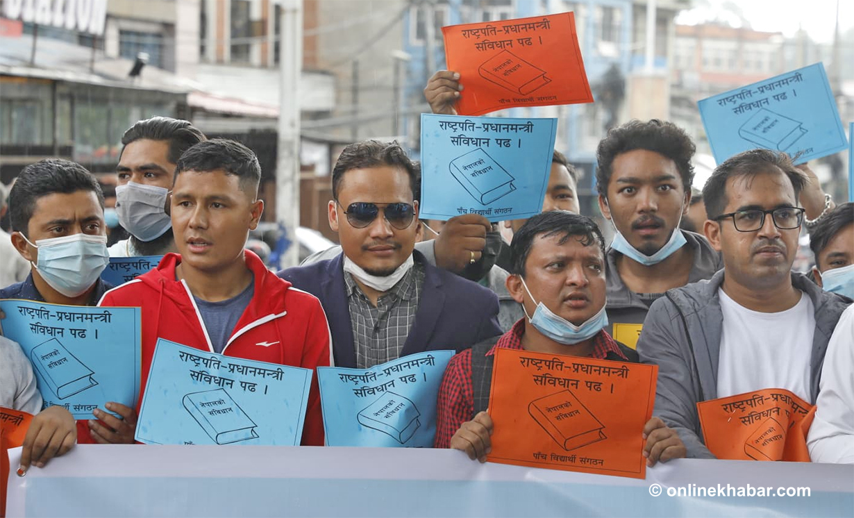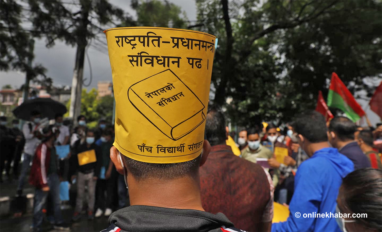 विपक्षी विद्यार्थी संगठनको प्रदर्शन : राष्ट्रपति-प्रधानमन्त्री संविधान पढ