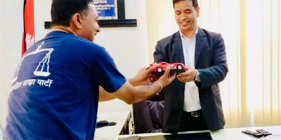 २८ जेष्ठ २०७६ मा साझा विवेकशील पार्टी कर्णाली प्रदेश कमिटीले प्रदेश सरकारलाई खेलौना (रातो कार) उपहार दियो । विकास बजेट खर्च गर्न नसकेको तर खर्च हुन नसकेको बजेट रकमान्तर गरेर ५४ वटा गाडी खरिद गरेको व्यङ्ग्यस्वरुप मुख्यमन्त्रीलाई खेलौना कार उपहार दिइएको हो ।