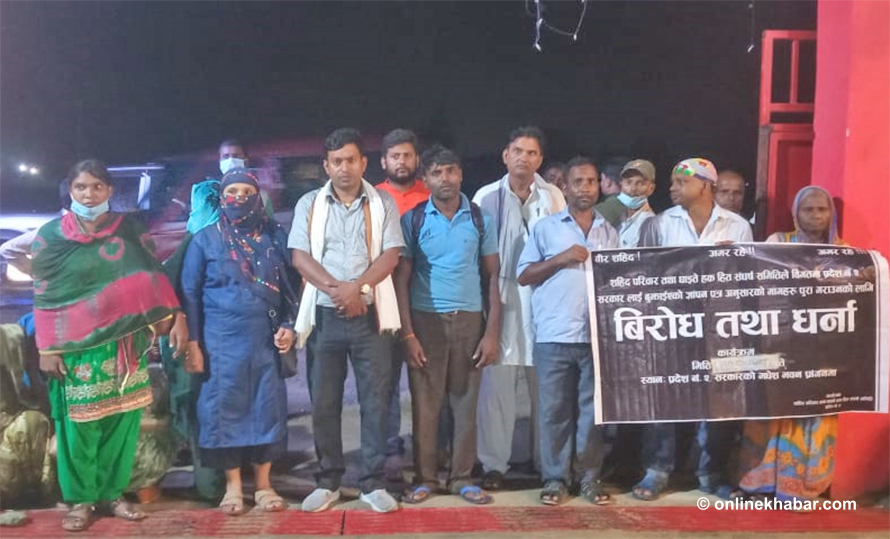 शहीद परिवार दिउँसो २ बजेदेखि बैठकस्थलमा धर्ना एिका छन् । तर साँझसम्म कसैले वास्ता नगरेको उनीहरुले बताए ।