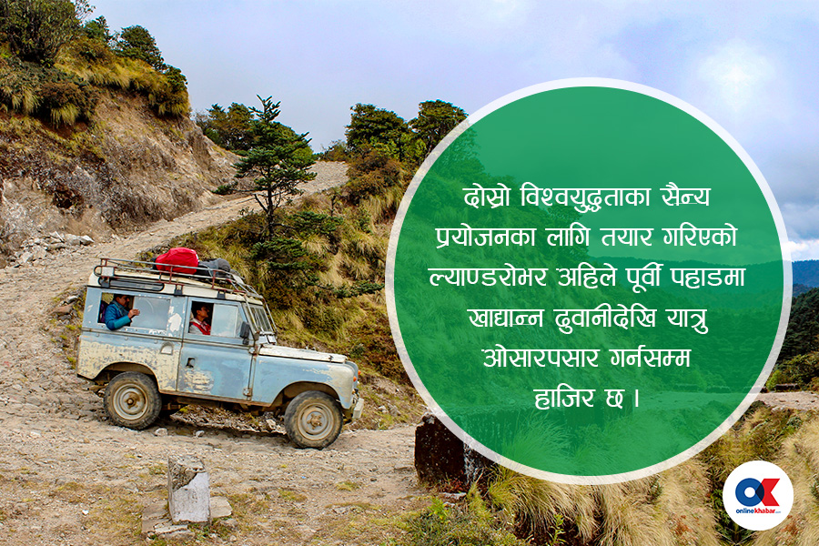 ल्यान्डरोभर त्यताबाट पनि प्रवेश गरे । गोर्खे गाउँका एक मारबाडीले २०२४ सालतिर ल्यान्डरोभर किने । उनले मानेभञ्ज्याङसम्मको सडकसमेत आफ्नै लगानीमा खनाएको इतिहास रहेको वैद्यले सुनाए । इलामको सापकोटा थरका अर्का व्यवसायीले पनि ल्यान्डरोभर किनेका थिए ।