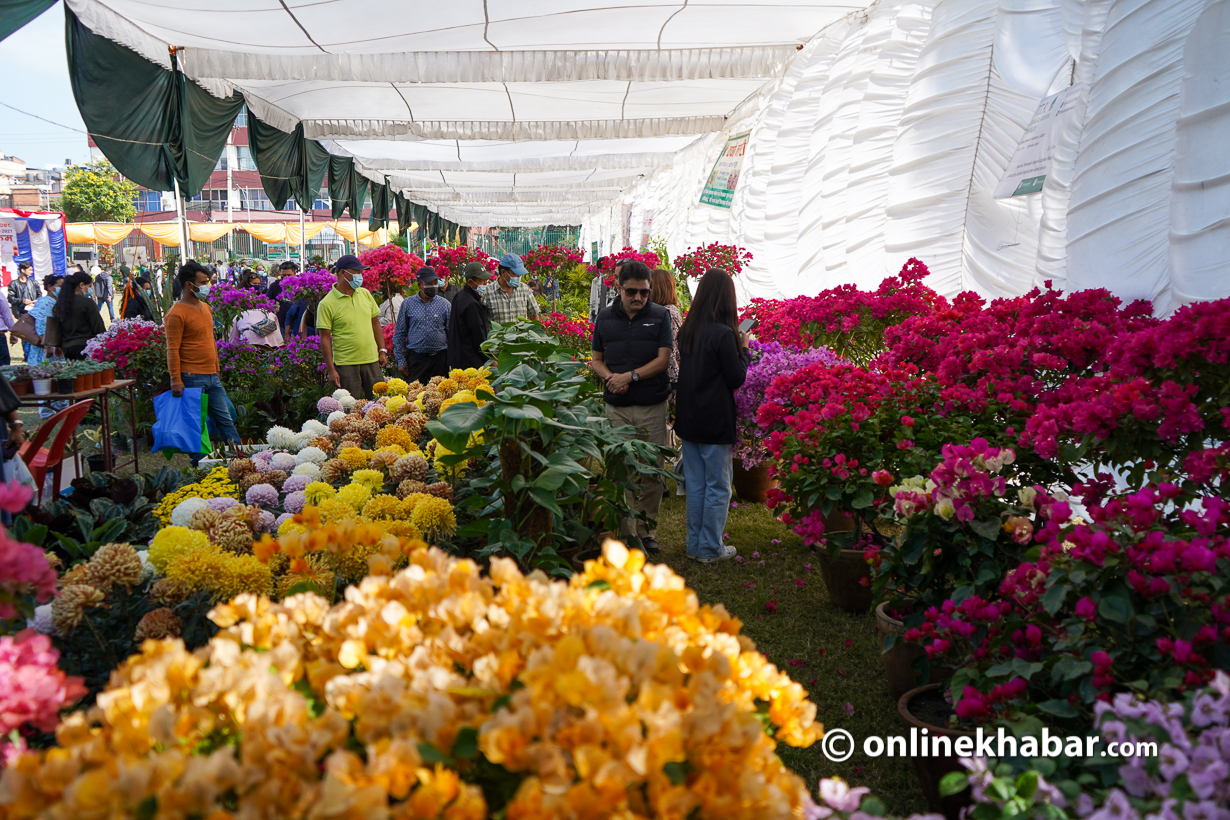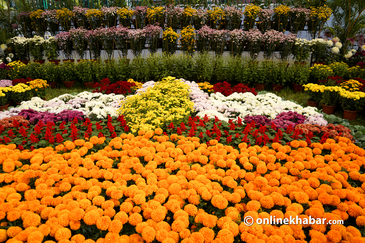 फूलैफूलको चाड तिहार नजिकिंदै गर्दा शुक्रबारदेखि शुरू भएको १४औं गोदावरी पुष्प प्रदर्शनी, २०७८ को कारण जावलाखेलको खेलमैदान फूलैफूलले ढाकेको हो ।