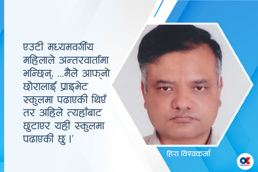 उनीहरू भन्छन्, ‘हाम्रो आम्दानीले प्राइभेट स्कुलमा पढाउन कहाँ पुग्छ र ? तर, त्यसमा पछुतो छैन, विद्यार्थीहरूका सबै खर्चहरू स्कुलले व्यहोर्छ, दिउँसोकोस्वस्थकर र स्वादिलो खाजा पनि स्कुलले नै प्रदान गर्छ । अहिले स्कुल भित्र पौडी पोखरी पनि बन्दै छ, जहाँ विद्यार्थीहरूले पौडी पनि सिक्न पाउने छन् ।’