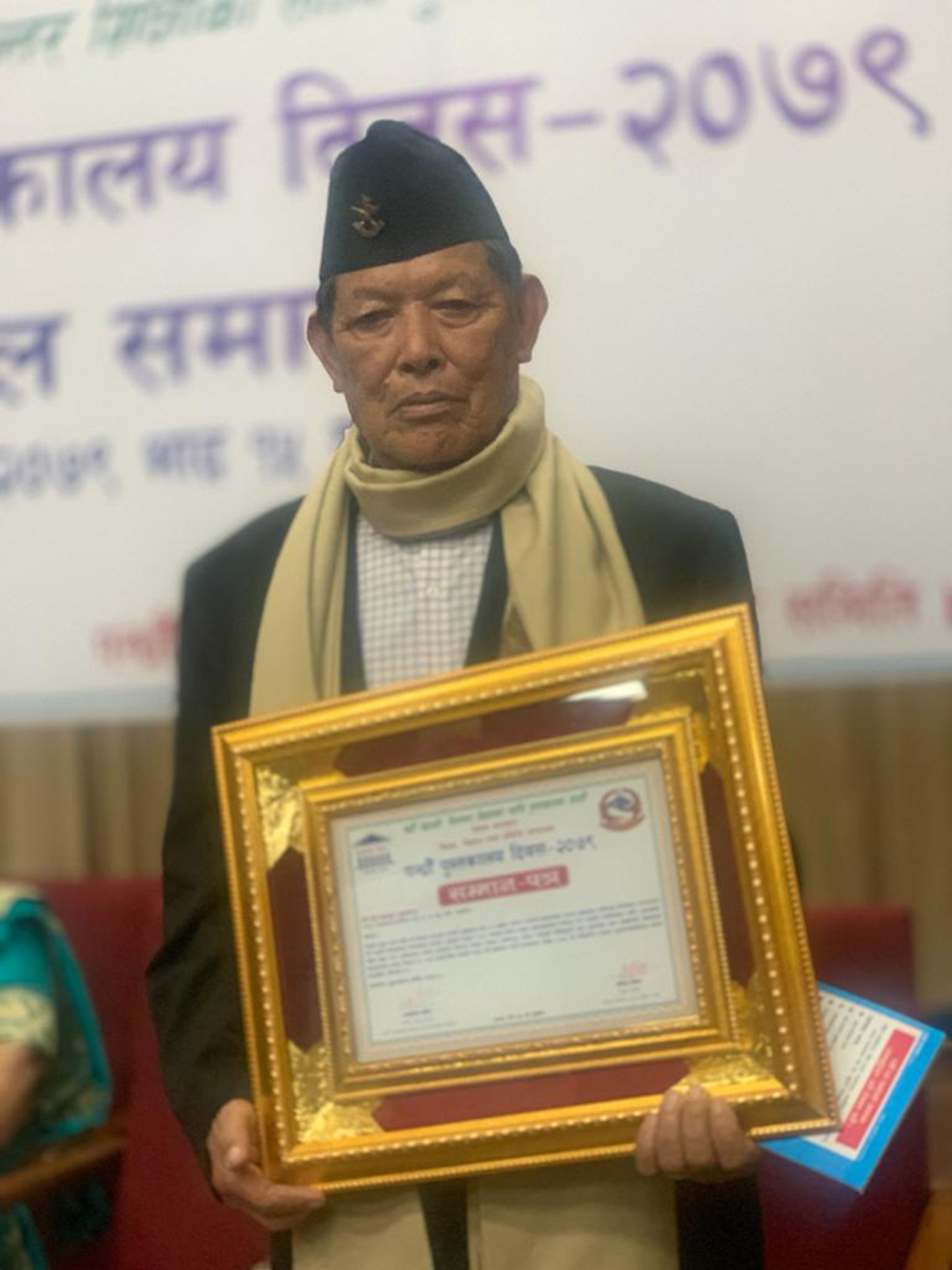 काठमाडौं । विमल स्मृति पुस्तकालय, धरानका सञ्चालक पूर्णबहादुर गुरुङलाई ‘उत्कृष्ट पुस्तकालय प्रेमी’को रुपमा सम्मान गरिएको छ ।