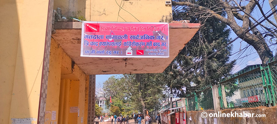 फर्जी भर्नाको विवादले चैत ५ गते अन्यत्र चुनाव हुँदै गर्दा त्रिचन्द्रमा ९ गते मात्रै हुने भएको छ । ‘नियम अनुसार भर्ना भएकाहरु कायम रहने । नियम भन्दा बाहिर गएर भर्ना भएकाहरुलाई हटाउने सहमति भएअनुसार निर्वाचनको संशोधित नयाँ तालिका सार्वजनिक गरिएको हो’ क्याम्पसका सहायक प्रमुख शिव कुमार महतोले अनलाइनखबरसित भने ।