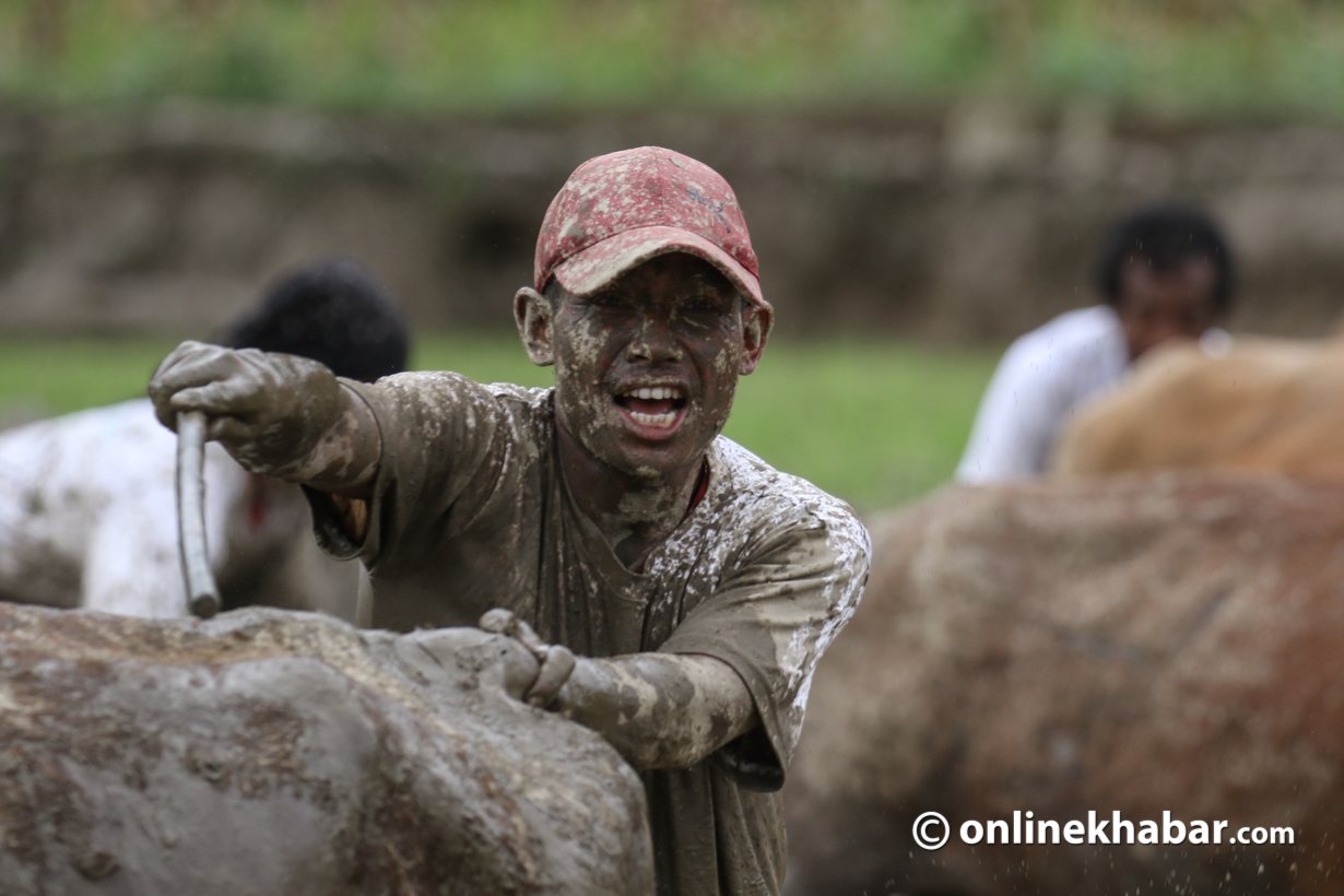धान रोपाइँका बेला हिलोमा काम गर्ने र त्यही हिलो एकअर्कालाई छ्यापेर खुशियाली साटासाट गरेका छन्।