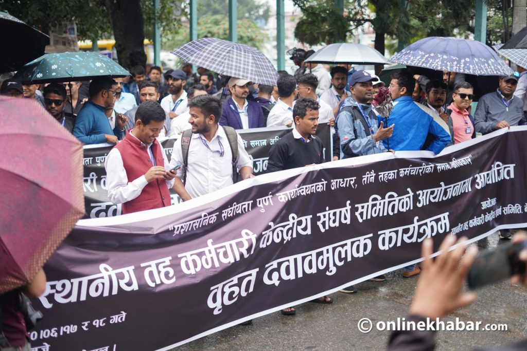७५३ स्थानीय तहकै कर्मचारीहरु काठमाडौं आइपुगेका उनीहरुले बुधबार माइतीघर मण्डलादेखि बानेश्वरसम्म प्रदर्शन गरेका छन् ।१५ असोजदेखि स्थानीय तहका कर्मचारी केन्द्रीय संघर्ष समितिले काठमाडौं केन्द्रित आन्दोलन थालेका हो ।