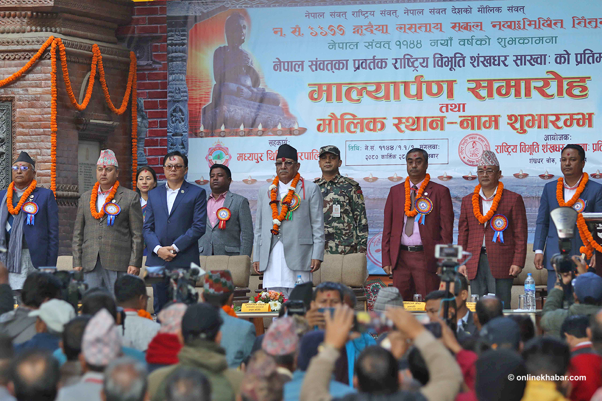 नेपाल संवतका ११४४ अवसरमा प्रधानमन्त्री प्रचण्डले भक्तपुरको मध्यपुर थिमिस्थित शंखधर खाख्वाको प्रतिमामा माल्यार्पण गरेका हुन् ।