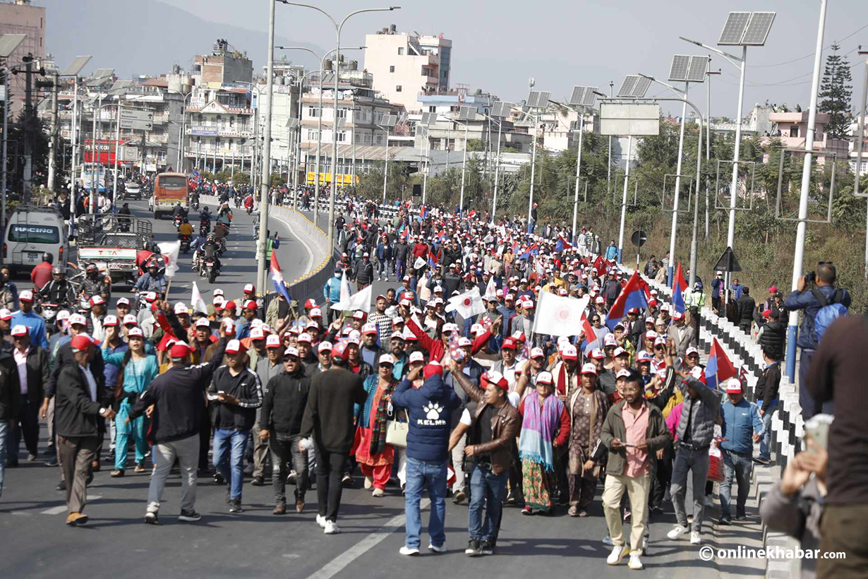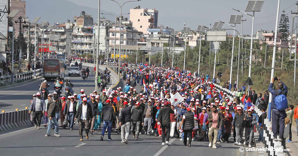 राष्ट्रिय युवा संघ नेपाल र अनेरास्ववियुको आयोजनामा भएको प्रदर्शनमा एमालेका नेता, विभिन्न जनवर्गीय संगठनका सदस्यहरु सहभागी छन् । एमालेले यो कार्यक्रमको नाम सरकार र अराजकतावादी विरुद्ध युवा विद्यार्थी प्रदर्शन भनेको छ ।
