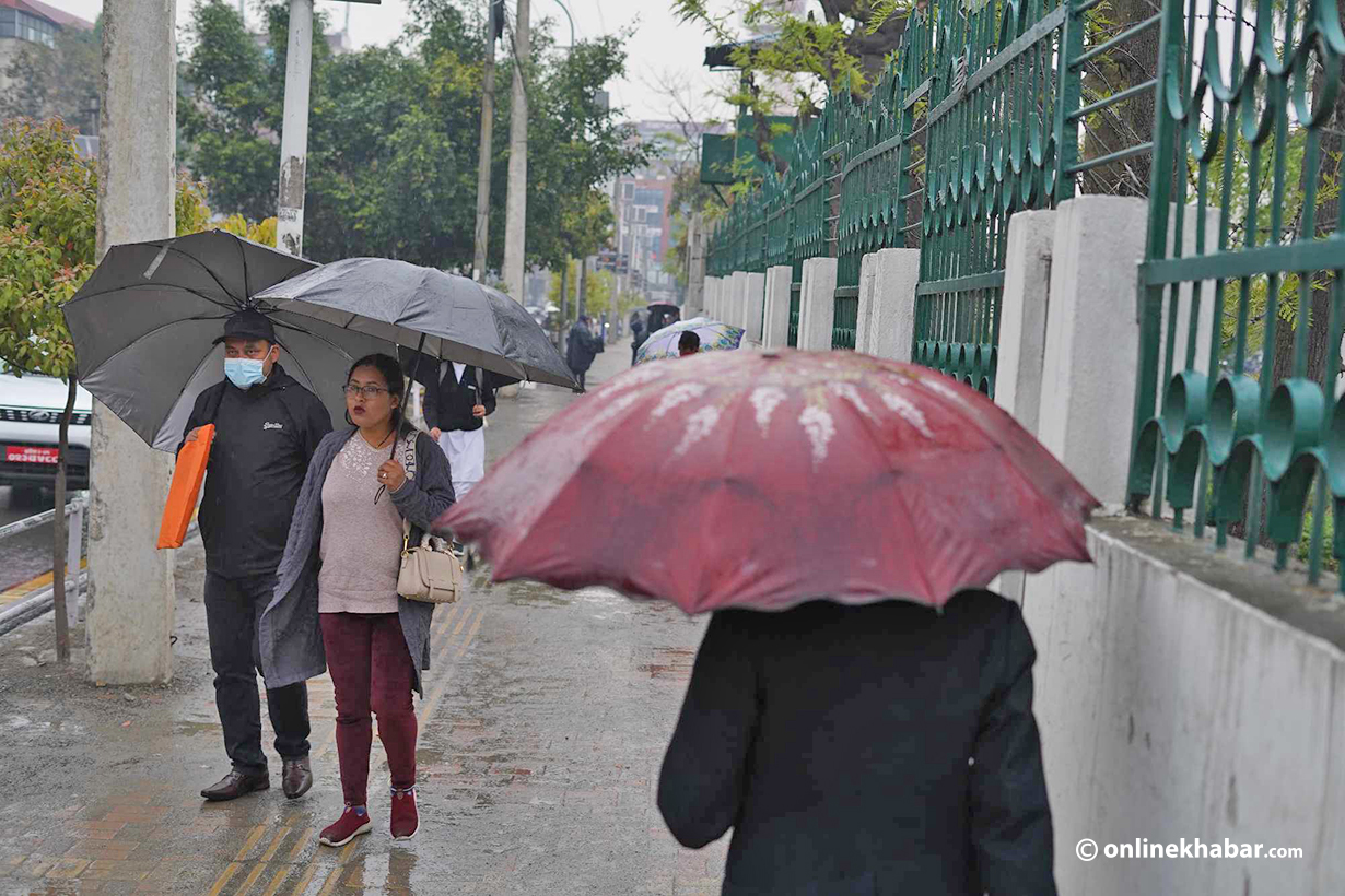 मौसम पूर्वानुमान महाशाखाका मौसमविद गोविन्द झाका अनुसार काठमाडौंमा आज र भोलि पनि छिटपुट वर्षा हुने सम्भावना छ ।