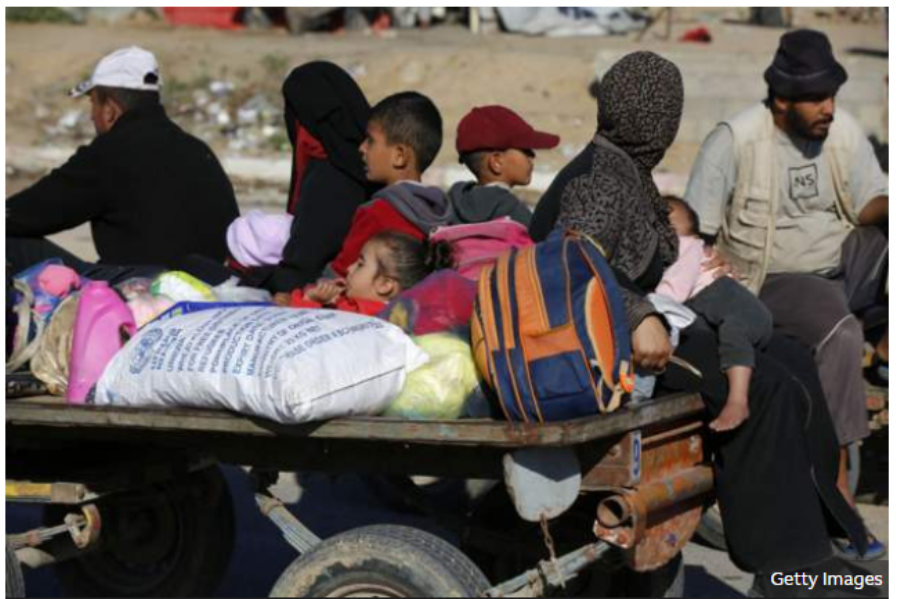 त्यसपछि ठूलो संख्यामा प्यालेस्टिनीहरु र घरबार छाडेर हिँडेको देखिएको छ । उनीहरु बालबच्चा, झोलाझ्याम्टा बोकेर उत्तरी रफाको खानयुनिसतर्फ गइरहेका छन् ।