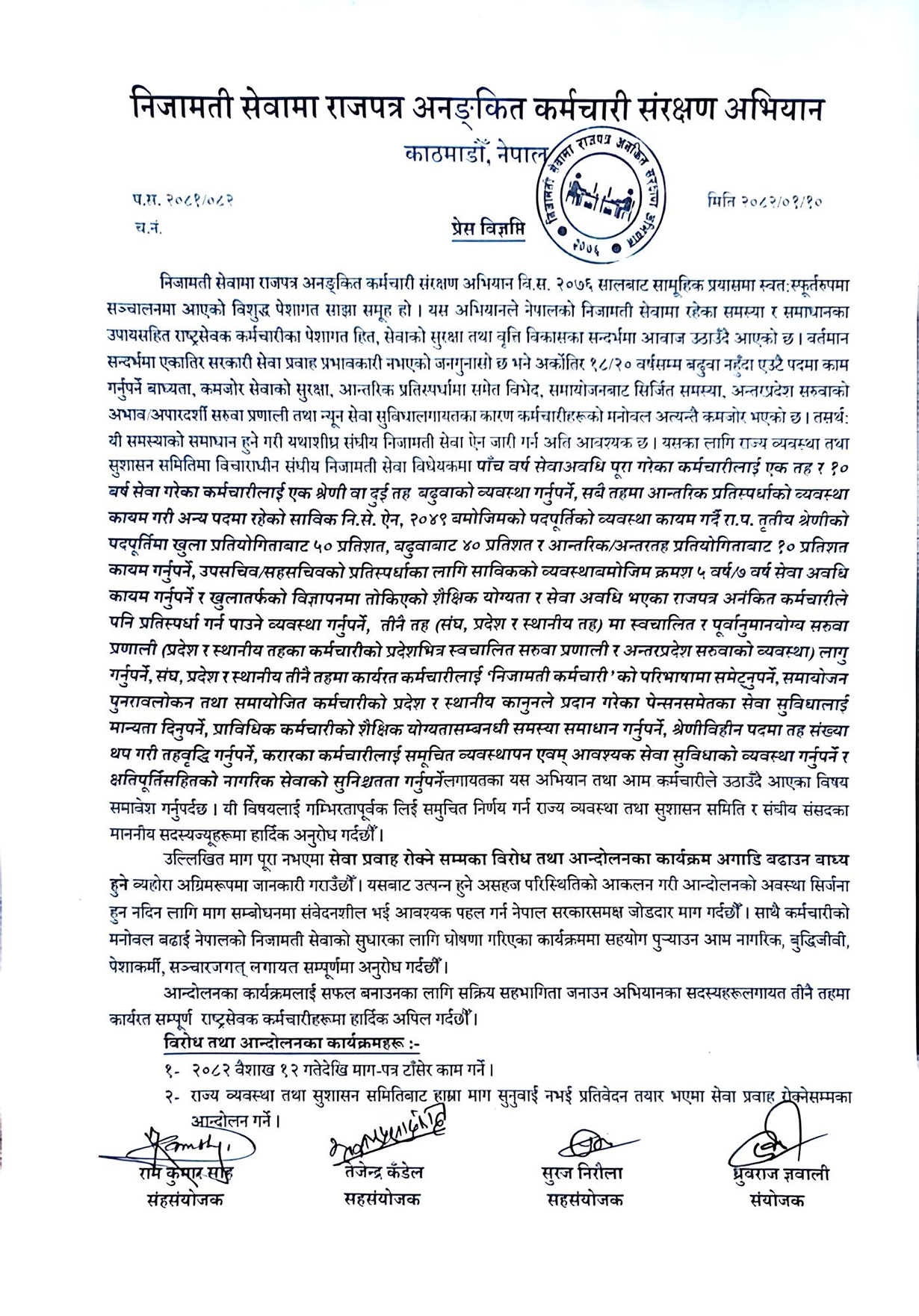 प्रस्तावित मापदण्डको मस्यौदामा जथाभावी स्थानीय तहमा निमित्तको जिम्मेवारी नदिने र दिनुपर्दा पाँच वर्ष अनुभव अनिवार्य गर्दै वरिष्ठताका आधार बनाउने उल्लेख छ ।