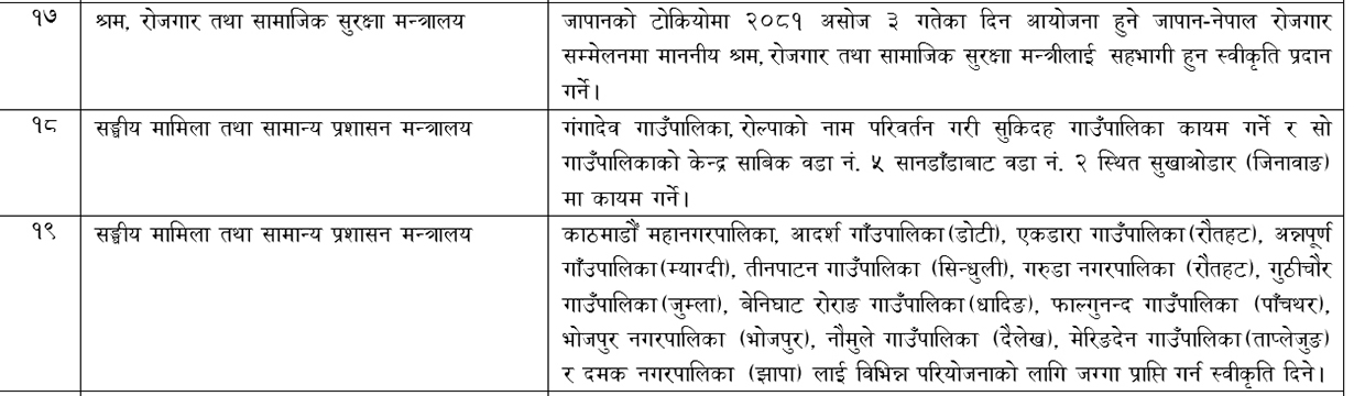 यस्ता छन् मन्त्रिपरिषदका २४ निर्णय