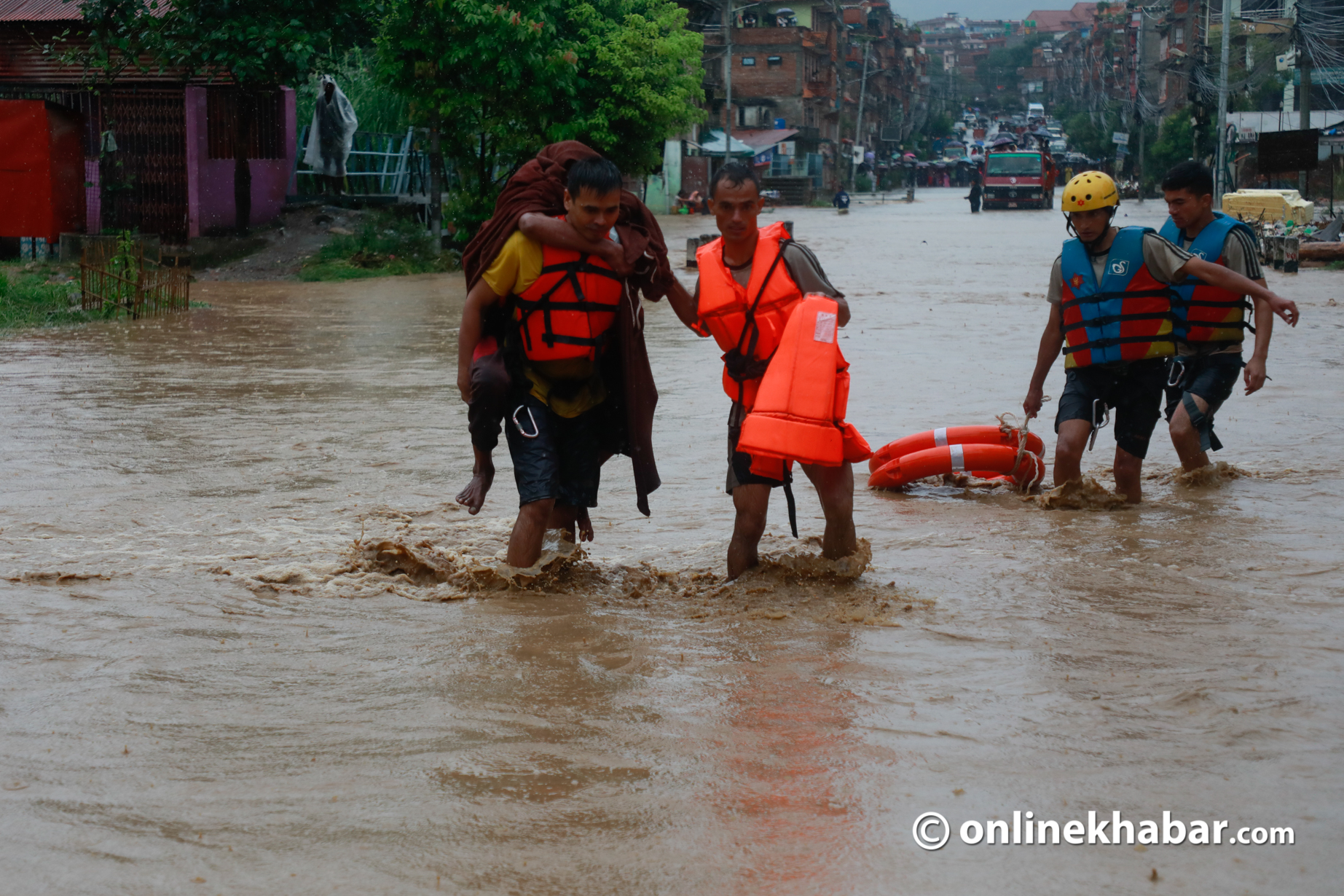 १२ असोज, काठमाडौं । शुक्रबारदेखिको अविरल वर्षाका कारण शनिबार काठमाडौंमा ठूलो बाढी आयो ।
