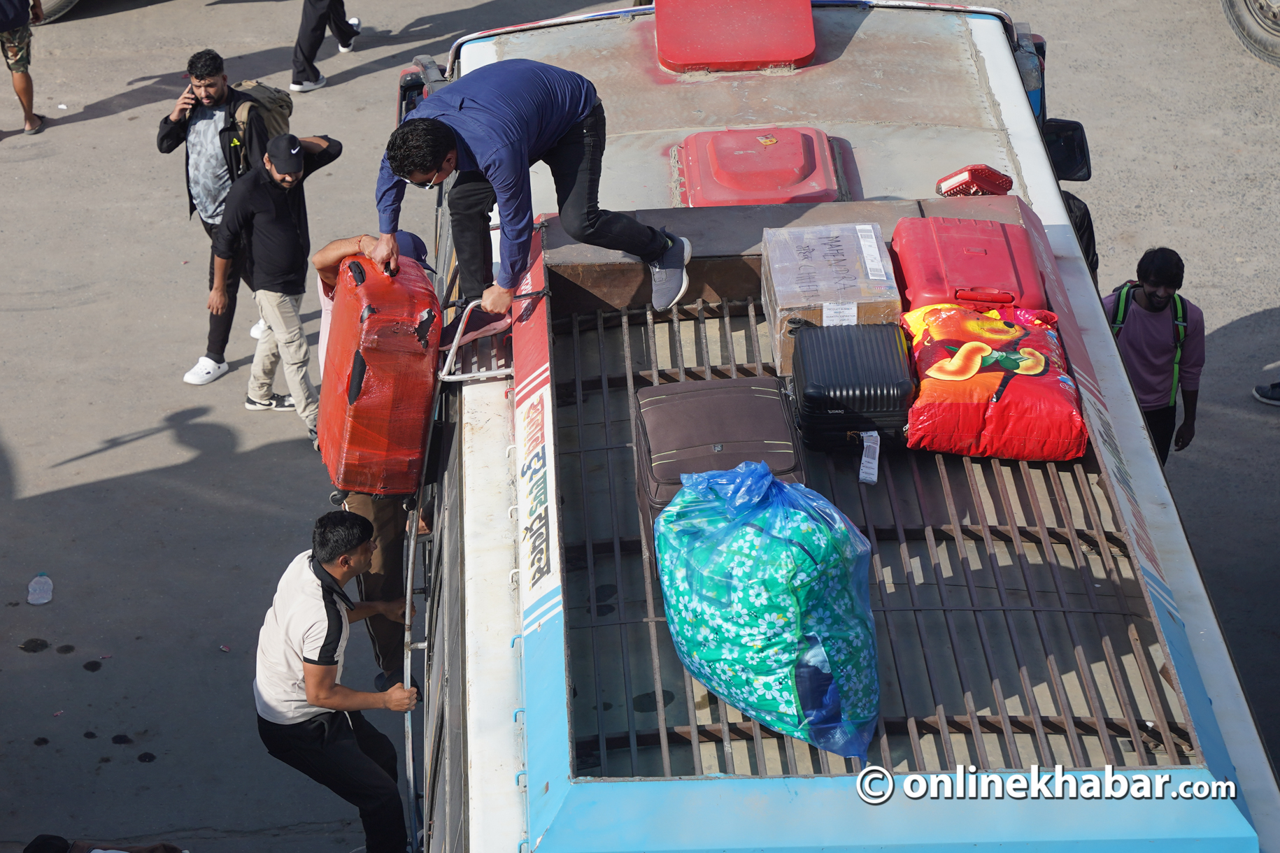 देशका धेरै ठाउँमा जाने बसहरु गोंगबुस्थित नयाँ बसपार्कबाट छुट्छन् । त्यसैले यहाँ बिहानैदेखि मानिसहरु झोला बोकेर घर जाने बस खोज्दै आइरहेका छन् ।