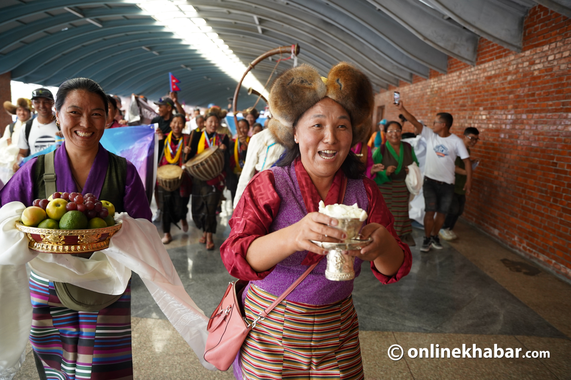 कीर्तिमानी आरोहीहरूको स्वागतमा विमानस्थल परिसरमा विभिन्न समुदायका मानिसहरू आफ्नो पहिचान झल्किने भेषभूषामा उपस्थित भएका थिए।