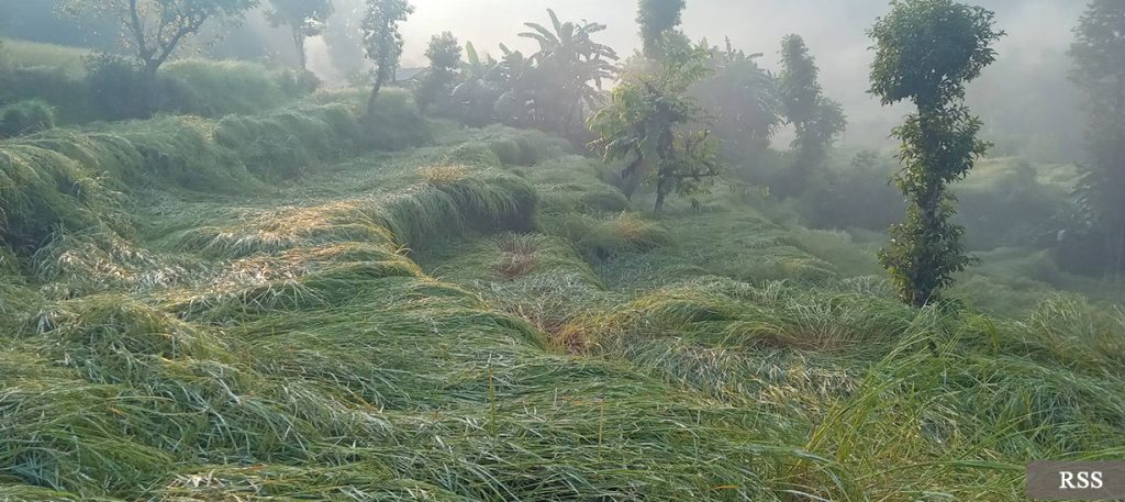 कतिपय स्थानमा किसानले काटेर खेतमै सुकाएको धानमा क्षति पुगेको छ भने कतिपय ठाउँमा पाकेको धान झारेर नष्ट भएको किसानले गुनासो गरेका छन् ।
