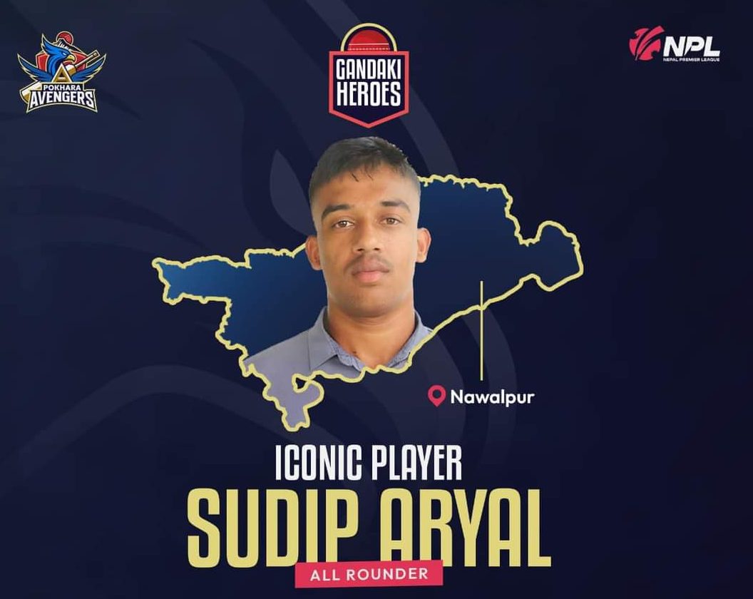 गण्डकी प्रदेशका लागि भएको ट्यालेन्ट हन्टमा नवलपुरका सुदिप अर्याल आइकनिक खेलाडी छनौट भएका हुन् । अलराउन्डर अर्याल ट्यालेन्ट हन्टबाट छनौट भएर एनपिएल खेल्न पाउने पहिलो आइकनिक प्लेयर बनेका छन् ।