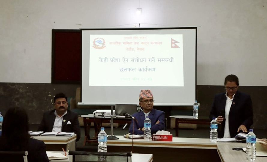 हेटौंडा–२ स्थित मन्त्रालयमा मंगलबार कानुनमन्त्री लामिछानेको अध्यक्षतामा प्रदेशमा आवश्यक कानुन निर्माण सम्बन्धमा बैठक बसेको थियो। मंगलबारको बैठकमा प्रदेशका प्रमुख सचिव हरि लम्सालसहित मन्त्रालयका सचिव, महाशाखा प्रमुखहरु र मन्त्रालयका कानुन अधिकृतहरुको उपस्थिति थियो।