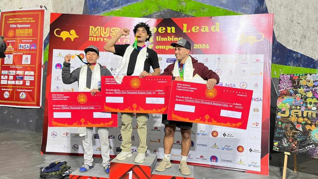 मुसा मसला र वोङ्छु पिक प्रमोसनको संयुक्त आयोजनामा शनिवार काठमाडौं स्पोर्ट क्लाइम्बिङ सेन्टरमा भएको प्रतियोगितामा रोनक पुरुषतर्फ र अमेरिकाकी राचेल महिलातर्फ च्याम्पियन बने ।