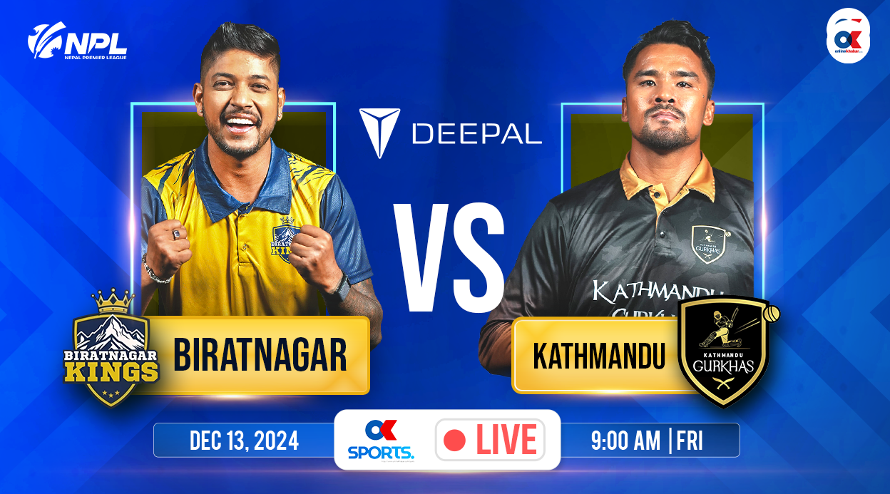 ३० मंसिर, काठमाडौं । नेपाल प्रिमियर लिगमा काठमान्डु गुर्खाजले विराटनगर किंग्सविरुद्ध पहिले बलिङ रोजेको छ । काठमान्डुका कप्तान करण केसीले टस जितेर बलिङ रोज्दै विराटनगरलाई ब्याटिङको निम्तो दिएका हुन् ।