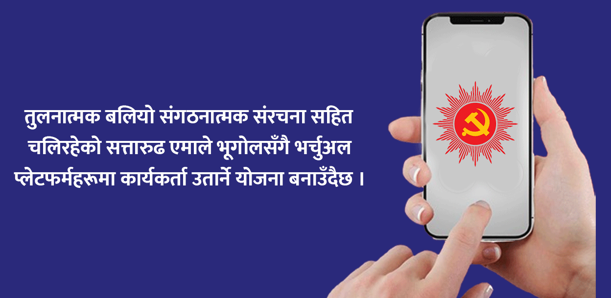 ‘संगठन संरचनामा हामी बलियो छौं । तर बढ्दो सूचना प्रविधिको पहुँचले सामाजिक सञ्जाल प्रयोग गर्नु मानिसको जीवन प्रणाली नै बनिसक्यो’ स्थायी कमिटी सदस्य भानुभक्त ढकाल भन्छन्, ‘अब हाम्रो पार्टी निर्माण अभियान प्रविधिको क्षेत्रबाट पनि हुन्छ ।’