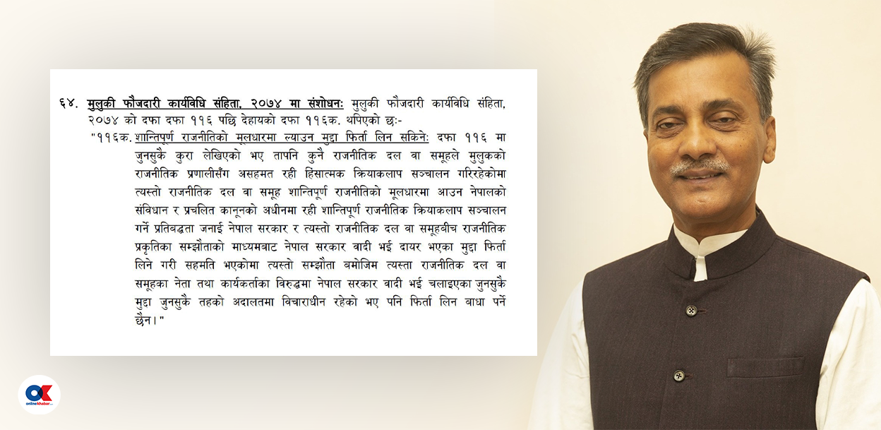 ‘केही नेपाल ऐनको दफा ६४ फिर्ता लिनु भनेको सरकार राजनीतिक सहमतिबाट पछाडि हट्नु हो, सहमतिप्रति वेइमानी गर्नु हो’ अध्यक्ष राउतले अनलाइनखबरसँग भने ।