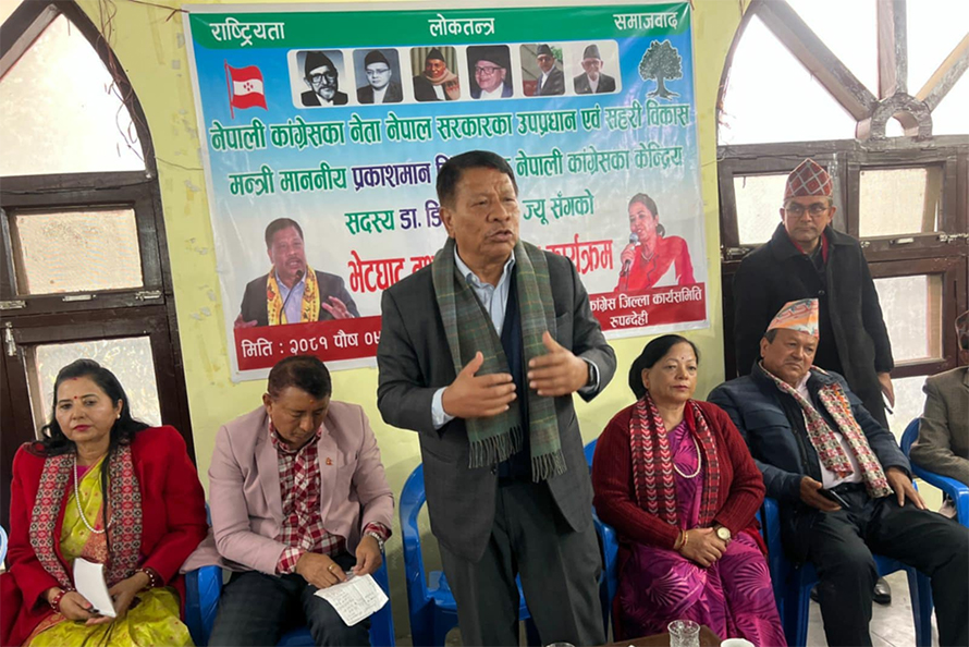 नेपाली कांग्रेस रूपन्देहीले मंगलबार आयोजना गरेको कार्यकर्ता भेटघाटलाई सम्बोधन गर्दै उनले राजनीतिक परिवर्तनसँगै आर्थिक समृद्धिको नेतृत्व गर्न पनि कांग्रेसले क्षमता राख्ने बताए।