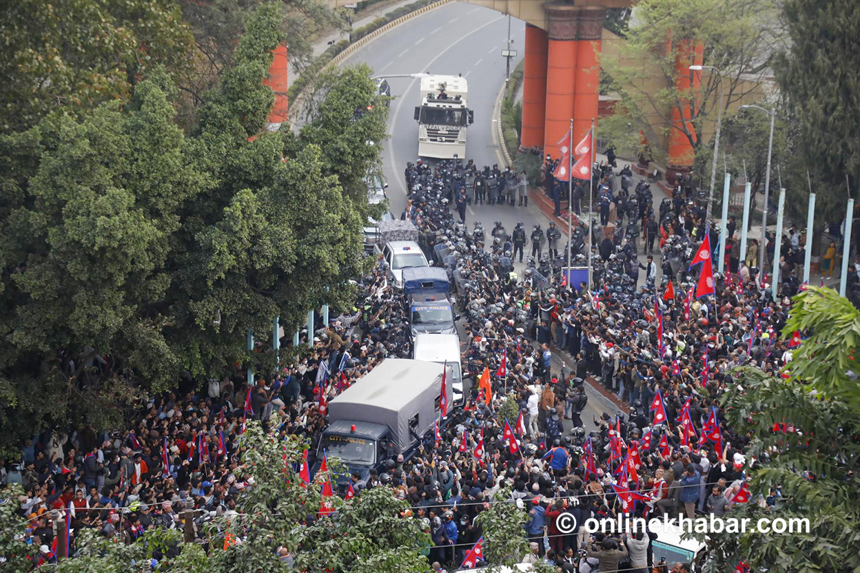 समर्थकहरूको प्रदर्शनका कारण विमानस्थल आसपासको यातायात व्यवस्था प्रभावित भएको थियो । अस्तव्यस्त ट्राफिक व्यवस्थाका कारण बच्चा बोकेका यात्रुहरू लगेज गुडाउँदै हिँडिरहेको देखिन्थे।