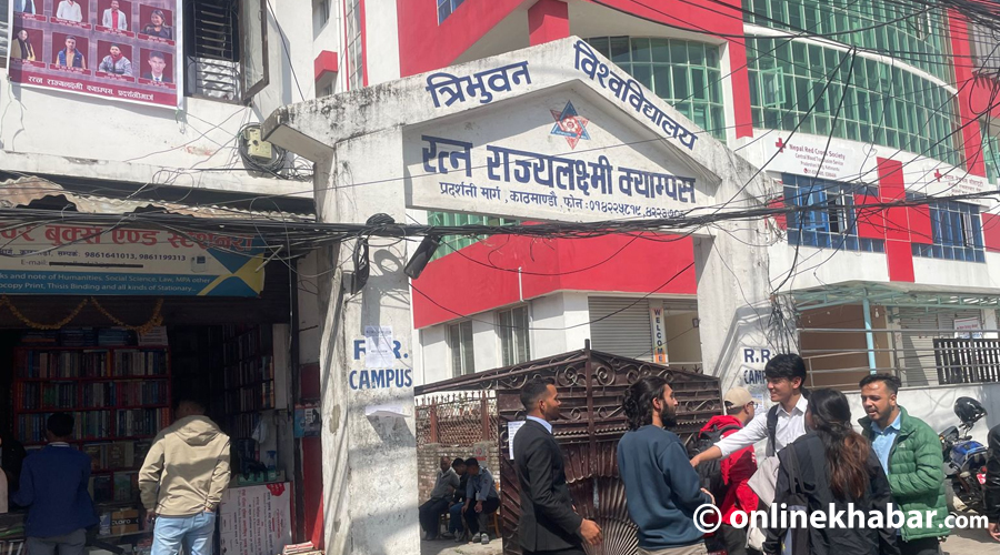 ५ चैत, काठमाडौं । स्वतन्त्र विद्यार्थी युनियन (स्ववियु) निर्वाचनको अन्तिम तयारी भइरहेका बेला रत्नराज्यलक्ष्मी (आरआर) क्याम्पसमा एमाले निकट विद्यार्थी संगठन अनेरास्ववियुले तालाबन्दी गरेको छ ।