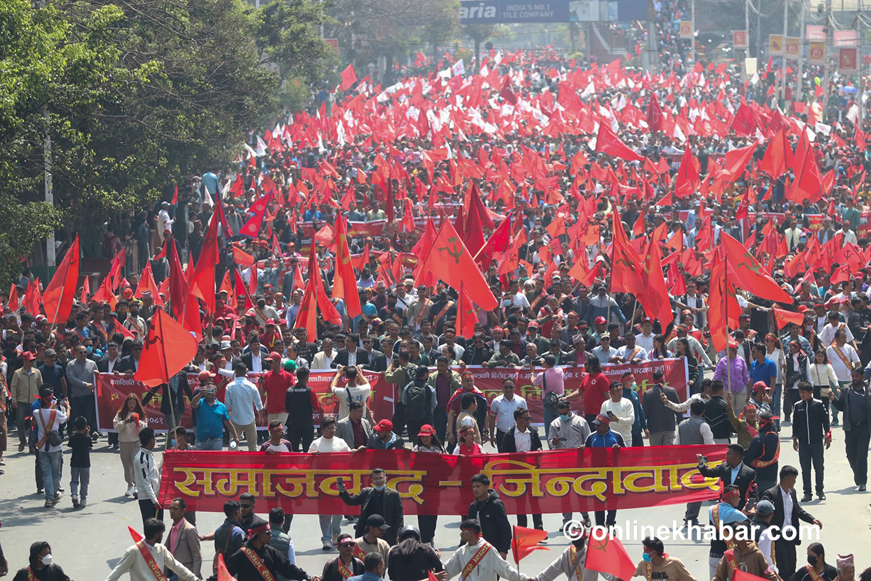 समाजवादी मोर्चाका नेता-कार्यकर्ताहरू अहिले सभास्थल भृकुटीमण्डपतर्फ अघि बढिरहेका छन् । अन्य रुटबाट पनि मोर्चाका नेता-कार्यकर्ताहरू आउने क्रमम जारी छ ।