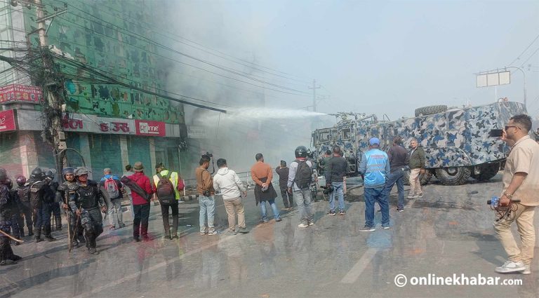 राजावादी प्रदर्शनकारीहरुले ब्यूरोको कार्यालय अगाडि सडकमा रोकेको सरकारी गाडीमा आगो लगाए । भिडले प्रहरीको गाडीलाई पल्टाउन खोज्दै आगो लगाएको थियो ।