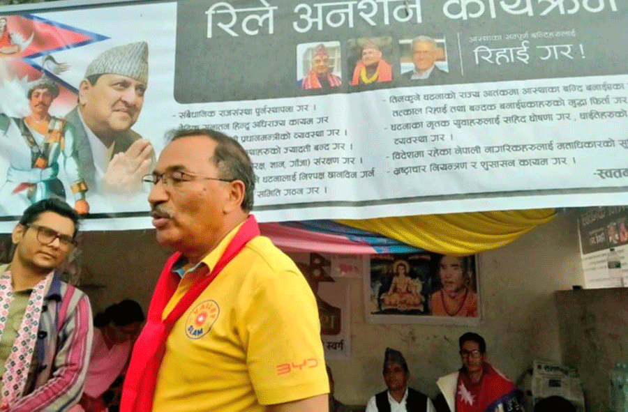 तीनकुने घटनापछि पक्राउ परेकाहरूको रिहाइको माग गर्दै पोखराको मुस्ताङ चोकमा रिले अनसनमा बसेकाहरूलाई थापाले भेटेका छन् । त्यसक्रममा उनले भने, ‘अनसन बसेका राष्ट्रवादी साथीहरू प्रति एक्यवद्धता जनाउन आज हामी पोखरा आइपुगेका छौं ।’