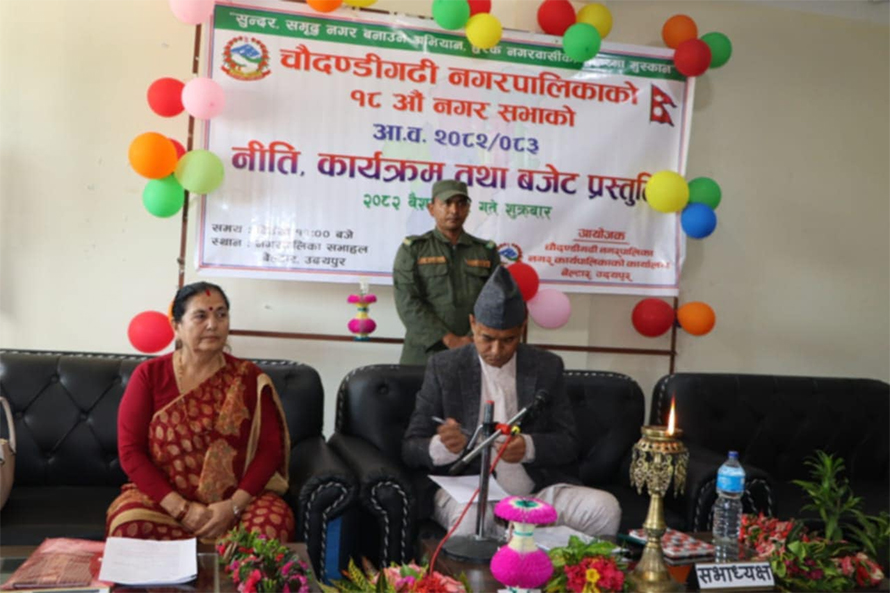 १९ वैशाख, काठमाडौं । उदयपुरको चौदण्डीगडी नगरपालिकाले आज निति कार्यक्रम तथा बजेट प्रस्तुत गर्ने ७५३ स्थानीय तहमध्ये पहिलो बनेको छ ।